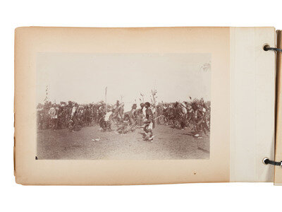 Scenes include "Scalp Dance" (2). -- "Beef issue, Indians butchering." -- "Sioux Indians, / Getting Their Beef Rations." -- "Indian Trivoi [sic]." -- "Picket Pin and Family." -- "Slaughter & Issue House." -- "Sioux Indians." -- "Indians Butchering a Steer." -- "Indian Celebration." -- "Transportation in the Far West." -- "Badlands from Pass Creek." -- "Cattle to be Issued." -- "Killing Cattle for Indian issue." -- "Cow Boys Throwing Steer."-- "Cow Boys Branding a Steer." -- "Sioux Indian Dance House." -- And 5 others.