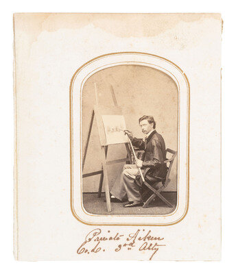 [CIVIL WAR]. Albumen photographs of soldier-artist William Aitken at work, and of the artwork he created.