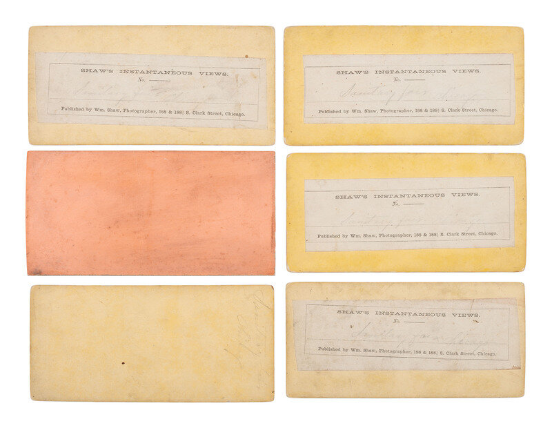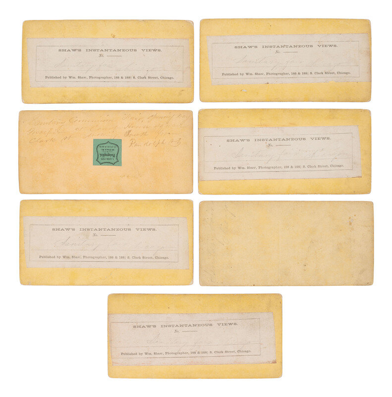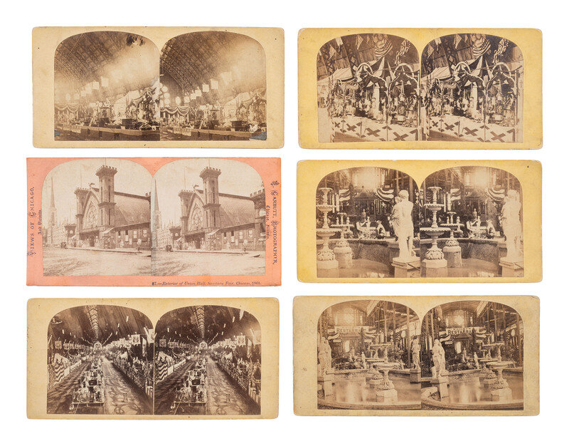 There were two sanitary fairs held in Chicago during the war, the first, officially named the Northwestern Soldier's Fair, being held in October of 1863, and the second, named the Great Northwestern Sanitary Fair, being held in the spring of 1865. One of the views included here features a printed caption with a date of 1865, and we can trace some of the other views to that particular fair, but we cannot state with certainty that all of the views were captured at the latter of the two fairs.