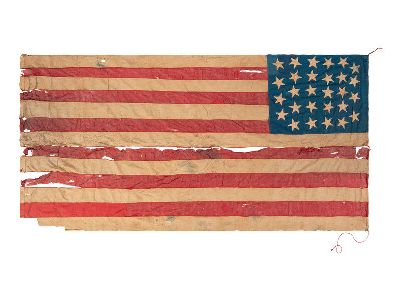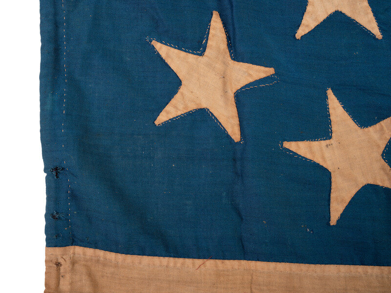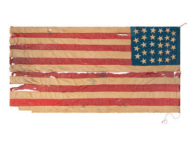 Provenance: Acquired from the estate of descendants of Civil War officer, John D. Muir, 21st and 144th Ohio Volunteer Infantries. The consignor relates that the flag was found among Muir's belongings, but the family had no further information to provide regarding its history.