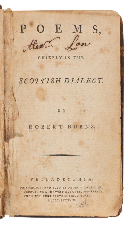 BURNS, Robert (1759-1796. Poems, Chiefly in the Scottish Dialect. Philadelphia: Peter Stewart and George Hyde, 1788.