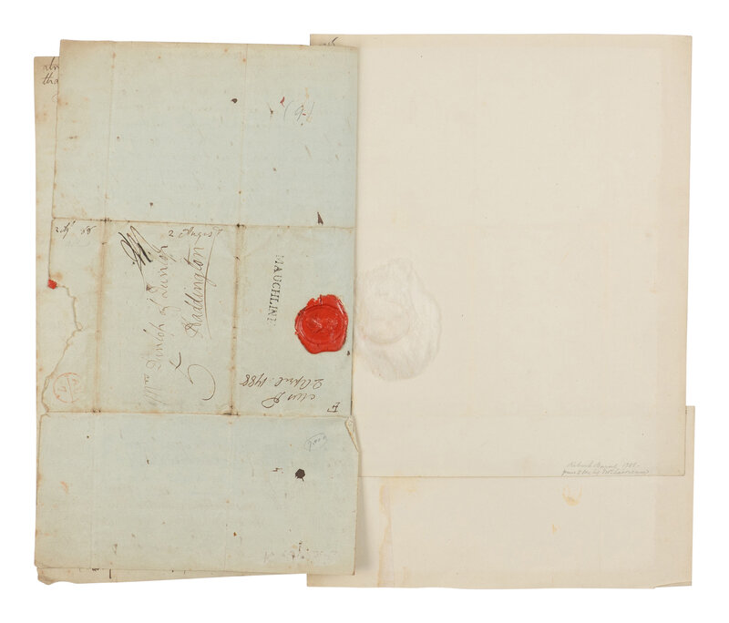 3pp., folio (330 x 197 mm), approximately 650 words, original wax seal intact, tipped to album sheet, old folds, scattered toning, small marginal loss from seal, not affecting text; housed and laid into a black morocco portfolio (extremes rubbed). Provenance: Francis Edwards (listed in Index of English Literary Manuscripts as being owned by him in 1931); John Gribbel (1858-1936), American businessman and collector of Burns (bookplate); sold, his sale, Parke-Bernet, 30 October 1940, lot 106; Hugh Perkins, Armagh, RI (bookplate).