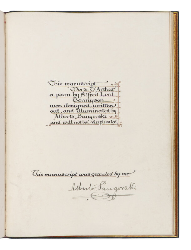 [CALLIGRAPHIC MANUSCRIPT]. SANGORSKI, Alberto, calligrapher and illuminator. -- TENNYSON, Alfred, Lord (1809-1892). Le Morte d'Arthur. [London, ca 1910].