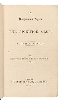 DICKENS, Charles (1812-1870). The Posthumous Papers of the Pickwick Club. London: Chapman and Hall, 1837.