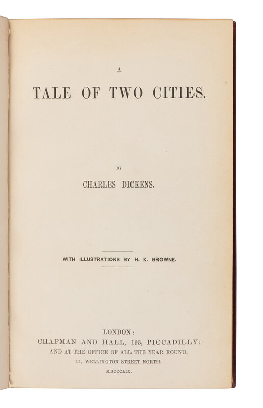 DICKENS, Charles (1812-1870). Tale of Two Cities. London: Chapman and Hall, 1859.