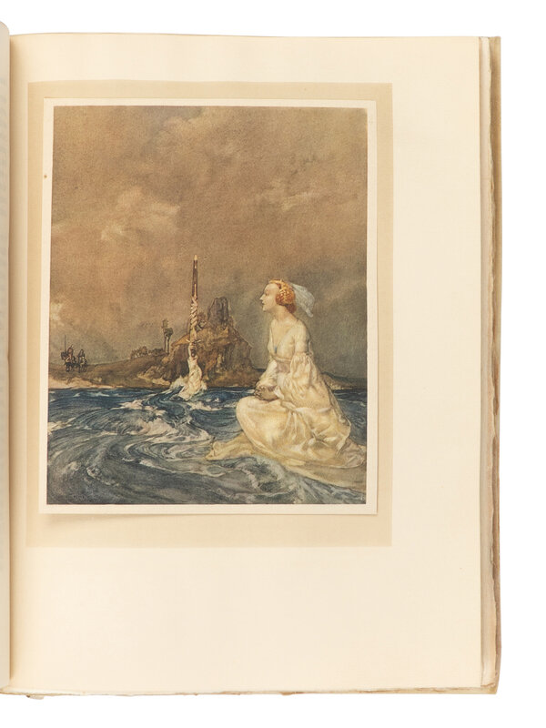 4 volumes, 4to. 48 tipped-in color plates by Sir William Russell Flint. Original gilt-lettered limp vellum, green silk ties, top edges gilt, others uncut; publisher's slipcases (rubbing, toning, minor splits with one slipcase missing top and bottom sections). Provenance: Narcissa Thorne (1882-1966), American artist (ownership bookplates).