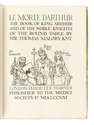 [FINE PRESS - THE MEDICI SOCIETY]. MALORY, Thomas, Sir (d. 1471). Le Morte d'Arthur. London: Philip Lee Warner for the Medici Society, 1921.