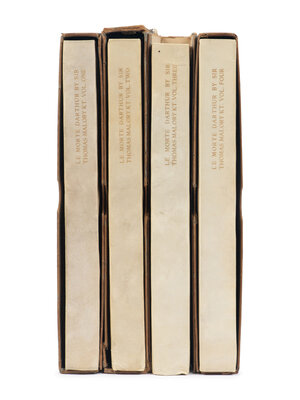 LIMITED EDITION, number 265 of 500 copies on handmade Riccardi paper, from an overall edition of 512. Le Morte d'Arthur is a collection of Middle English prose rearranged from various English and French sources by Sir Thomas Malory during the 15th century and comprising the tales of Arthur, Guinevere, Lancelot, Merlin, and Perceval as well as the respective folklores of each. The work was completed in 1470 and the first printed version was executed by William Caxton fifteen years later, making it one of the first books printed in England. The present copy bears the bookplates of Narcissa Thorne, an American miniaturist artist known for her highly detailed miniature rooms, the largest collection of which is held at the Art Institute of Chicago.