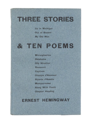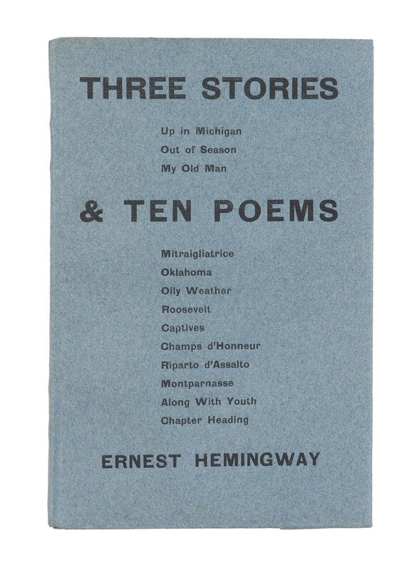 HEMINGWAY, Ernest (1899-1961). Three Stories and Ten Poems. Paris: Contact Publishing Co., 1923.