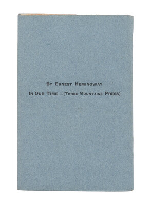 Three Stories & Ten Poems, Hemingway’s first published book, contains the stories “Up in Michigan,” “Out of Season,” and “My Old Man,” along with ten poems—six of which had appeared in Poetry in January 1923. The remaining four poems and all three stories made their debut in this volume, published by Robert McAlmon’s Contact Publishing Co. and printed in Dijon by Maurice Darantiere, the same printer Sylvia Beach used for Ulysses the year prior. Though the book sold poorly, it marked an early critical success for Hemingway: “My Old Man,” a tale of a boy’s disillusionment with his corrupt jockey father, was selected for The Best Short Stories of 1923, edited by Edward J. O’Brien. Hemingway, who had shown O'Brien the story “as a curiosity,” was surprised when O’Brien not only praised the piece but also asked to dedicate the anthology to him. Hemingway agreed, writing in return: “And to show you how much I appreciate it I will make a very solemn vow to you and God never to think about any readers but you and God when writing stories all the rest of my life” (Selected Letters, ed. Carlos Baker, p.103). Hanneman A1a.