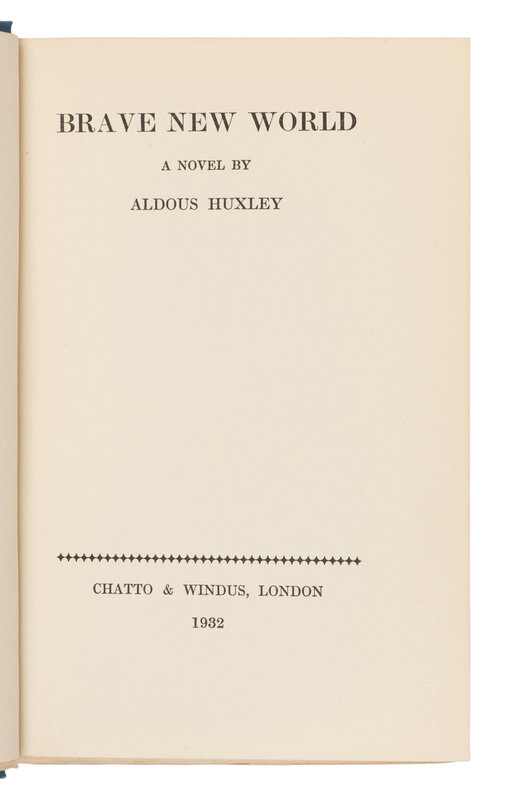 HUXLEY, Aldous (1894-1963). Brave New World. London: Chatto & Windus, 1932.