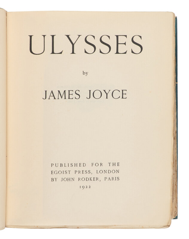 JOYCE, James (1882-1941). Ulysses. London and Paris: John Rodker for The Egoist Press, 1922.