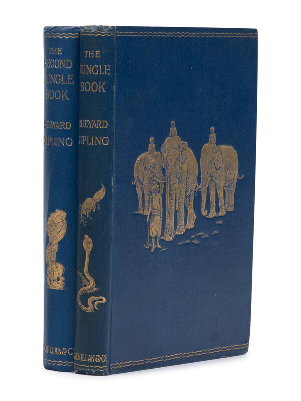 Together 2 volumes, 8vo. Frontispiece and illustrations after J. Lockwood Kipling, W. H. Drake and P. Frenzeny. (Some spotting throughout both volumes.) Original blue cloth, gilt-decorated on front covers, gilt-lettered on spines, edges gilt (minor wear to spine ends, very light sunning to spines). Provenance: W.H. Smith & Son (embossed stamp); John Talbot Gernon (ownership bookplate in The Jungle Book).