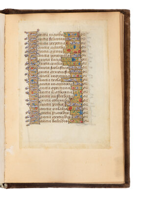 [LEAF BOOK - ILLUMINATED MANUSCRIPTS]. A leaf book containing various illuminated leaves from several Books of Hours, most executed in France, ca 13th-15th centuries.