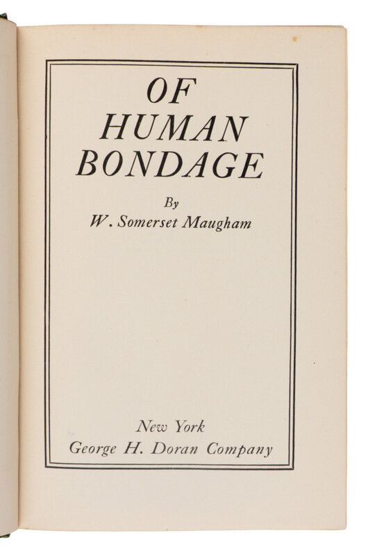 MAUGHAM, W. Somerset (1874-1965). Of Human Bondage. New York: George H. Doran Company, 1915.