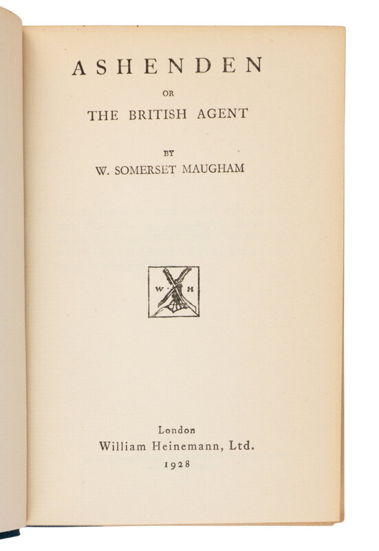 MAUGHAM, W. Somerset (1874-1965). Ashenden, or The British Agent. London: William Heinemann, 1928.
