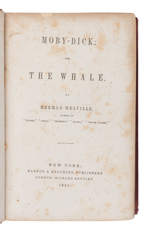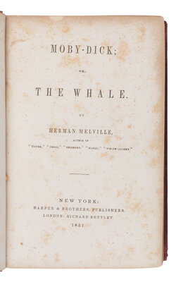 MELVILLE, Herman (1819-1891). Moby Dick, or, The Whale. New York: Harper & Brothers, 1851.