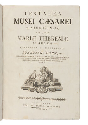 Baron Ignaz Edler von Born (1742–1791) was born in Karlsburg, Transylvania (now Alba Iulia, Romania). Having rejected a Jesuit education in Vienna, he studied law in Prague and only later turned to natural history—and, more importantly, to mining. He joined the Department of Mines and the Mint in Prague in 1770, and mineralogy is the field in which he is now best remembered (see DSB II, p. 315). His reputation and extensive experience led to his being called to Vienna by the Empress in 1776 to arrange and describe the Imperial collection. The work on the shells in the Royal Collection was the only published result of this commission, which was apparently cut short by the Empress’s death in 1780. An earlier edition, in octavo and with only a single plate, appeared in 1778. "Born's interests and activities extended into fields other than mineralogy and mining... In 1783 Born published Specimen monachologiae, a vicious satire against monks in which the various orders were classified according to a system modeled after Linnaeus (DSB)." BM(NH) I, p. 202; S. Peter Dance, Shell Collecting An Illustrated History, pp.93-94, no. 36; Nissen ZBI 470.