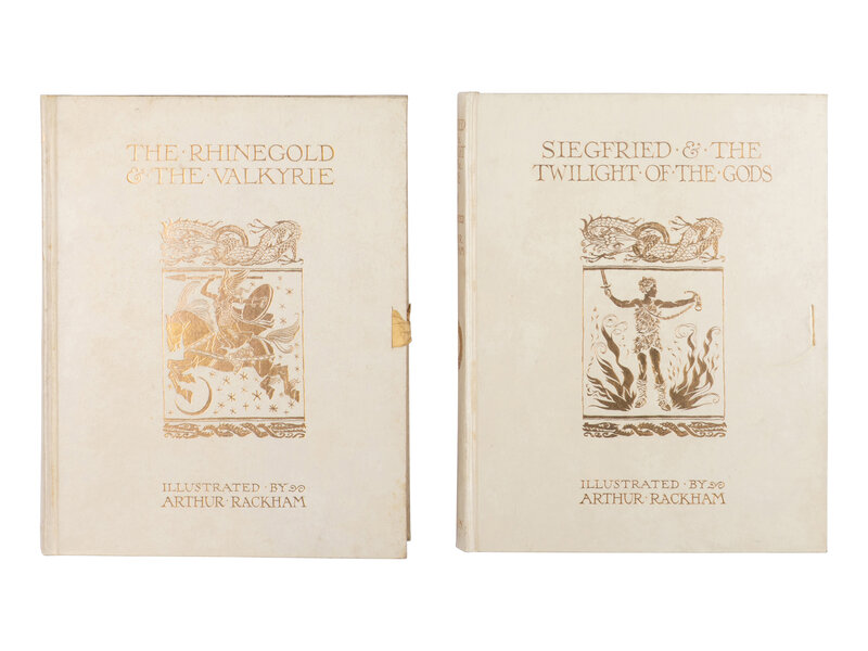 [RACKHAM, Arthur (1867-1939), illustrator]. WAGNER, Richard (1813-1883). [The Ring of the Niblung]. The Rhinegold & the Valkyrie. -- Siegfried & the Twilight of the Gods. Margaret Armour, translator. London and New York: William Heinemann and Doubleday Page & Co., 1910, 1911.