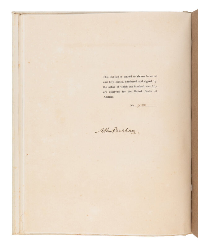 [Laid in:] Arthur Rackham Exhibition broadsheet, Leicester Galleries, 15 October - 12 November, 1910.