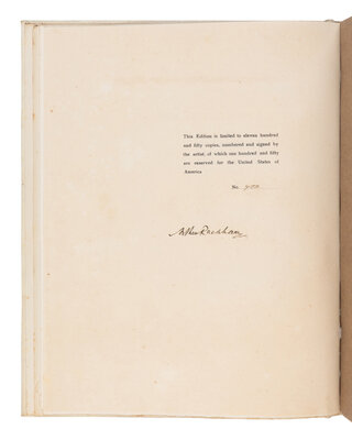 FIRST EDITIONS, LIMITED ISSUE, numbers 757 and 452 of 1150 copies, BOTH SIGNED BY RACKHAM. These English translations of Wagner's first two operas in The Ring of the Niblung series contain some of Rackham's only illustrations for an adult audience. Latimore & Haskell, p.37-38; Riall pp.103, 109.