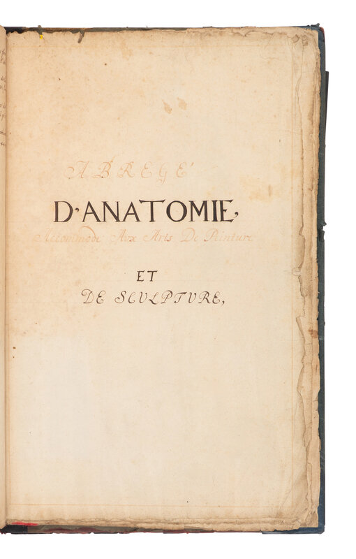 [SCIENCE & MEDICINE -MANUSCRIPT]. [After TORTEBAT, Francois (c 1616-1690), illustrator. -- PILES, Roger de (1635-1709)]. "Abrege d'Anatomie Accommode aux Arts de Peinture et de Sculpture." [France, ca 17th- early 18th century].