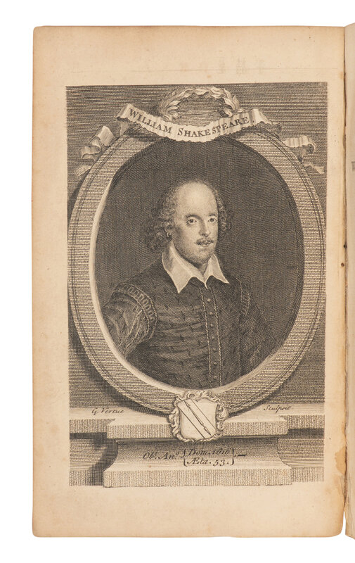 FIRST SAMUEL JOHNSON EDITION of Shakespeare's plays that was the "foundation of hundreds of subsequent issues" (Jaggard). FIRST ISSUE with Corbet listed as the second bookseller and Johnson's preface unpaginated. The occasion of the bicentennial of Shakespeare's birth attracted new editorial attention to his plays, of which this edition of Samuel Johnson is the most notable example. It is especially noteworthy for its strong (and new) affirmation of the textual primacy of the First Folio of 1623. Johnson wrote in the notes that the First Folio "is equivalent to all others, and the rest only deviate from it by the printer's negligence." Lowndes acknowledged that it was "superior to any of its predecessors, and the preface commanded universal admiration." Chapman and Hazen pp.146-147 (canceled leaves not visible); Jaggard, p.501.
