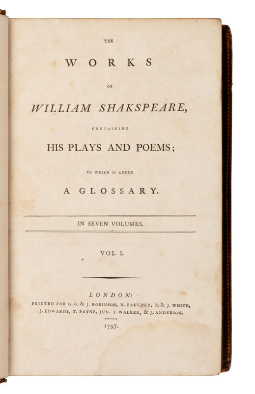 [With:] SHAKESPEARE. Works. London: G.G. & J. Robinson, et al, 1797. 7 volumes, large 8vo. Contemporary diced calf gilt (rubbing to extremities, spine ends chipped). Jaggard, p.507.