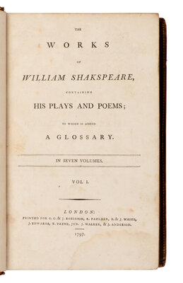 SHAKESPEARE, William (1564-1616). [Prolegomena...-] The Dramatick Writings of Will. Shakspere. London: for John Bell, 1786-1788.