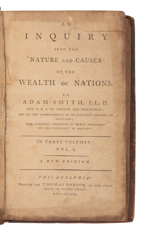 SMITH, Adam (1723-1790). An Inquiry into the Nature and Causes of the Wealth of Nations. Philadelphia: Thomas Dobson, 1789.