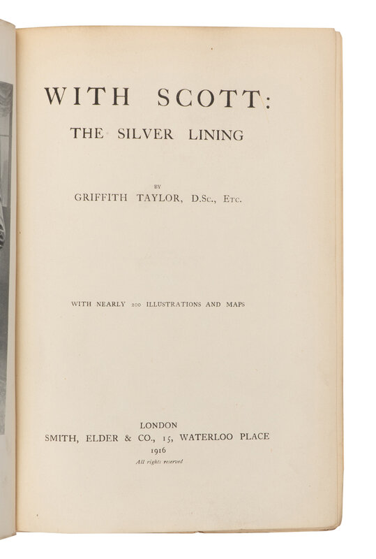 [TRAVEL & EXPLORATION]. TAYLOR, Thomas Griffith (1880-1963). With Scott: The Silver Lining. London: Smith, Elder, & Co., 1916.