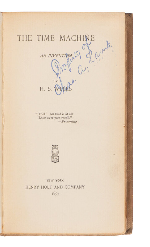 WELLS, H.G. (1866-1946). The Time Machine, an Invention. New York: Henry Holt, 1895.
