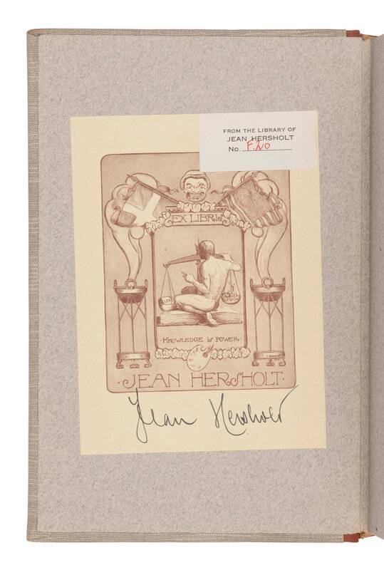 8vo. Original brown cloth-backed linen, spine lettered in silver, top edge silver, others uncut (light to sunning to spine, light spotting to upper cover near top edge); folding cloth chemise and morocco-backed slipcase. Provenance: Jean Hersholt (1886-1956), Danish-American actor (signed bookplate). Hersholt performed in a total of 140 films, including “Flesh,” a 1932 film co-written by an uncredited William Faulkner.