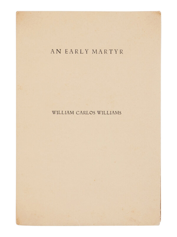 WILLIAMS, Carlos William (1883-1963). An Early Martyr. New York: The Alcestis Press, 1935.