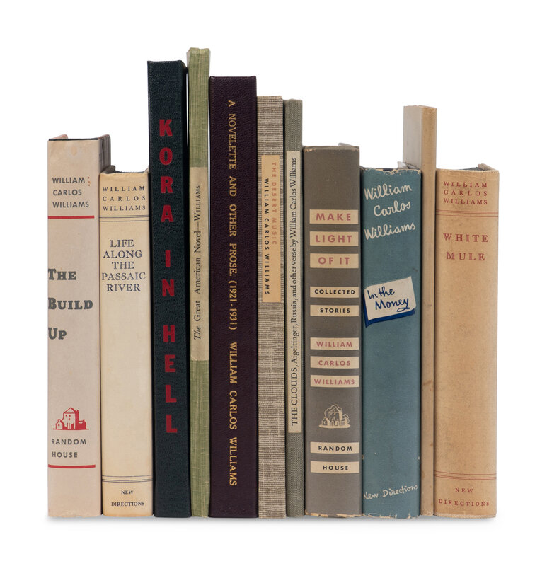 The Great American Novel. Paris, 1923. LIMITED ISSUE, number 211 of 300 copies. -- A Novelette and Other Prose (1921-1931). Paris, 1932. -- The Cod Head. SF, 1932. LIMITED ISSUE, one of 125 copies, SIGNED BY WILLIAMS. -- White Mule. CT, 1937. -- Life Along the Passaic River. CT, 1938. -- In the Money. CT, 1940. -- The Brown Span. CT, 1941. SIGNED BY WILLIAMS on the front free endpaper. -- The Clouds. NY, 1948. LIMITED ISSUE, number 115 of 310 copies. -- Make Light of it. NY, 1949. SIGNED BY WILLIAMS on the front free endpaper. -- The Build Up. NY, 1952. -- The Desert Music. NY, 1954. LIMITED ISSUE, number 68 of 100 copies, SIGNED BY WILLIAMS. -- Kora in Hell. SF: Arion Press, 1998.