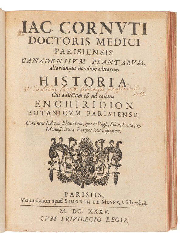 CORNUT, Jacques-Philippe (1606-1651). Canadensium Plantarum Historia Enchiridion Botanicum. Paris: Simonem Le
