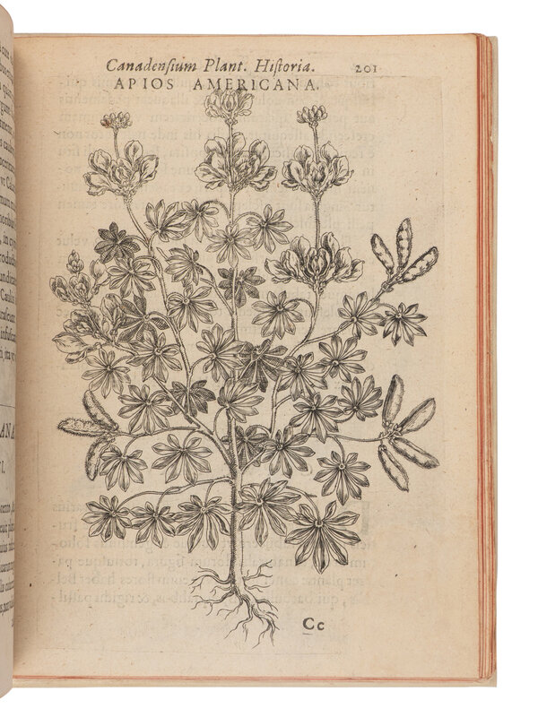 French physician Cornut never visited North America, but received plant specimens from the Robins family, who supervised the gardens of Henry IV and the garden of the Paris Faculty of Medicine, and the Morin family, who owned several Parisian commercial nurseries. Eighty-six different species are described, thirty native to north-eastern America, a number of them for the first time in any printed book. Among these is the Guernsey lily, so-named from its introduction into England some fifty years later, when specimens were found on the island following the wreck of a ship lost en route from Cape Town with bulbs among the cargo (Blunt, The Art of Botanical Illustration, 1950). Cornut also includes five South African bulb plants, again illustrated here for the first time. Bell C493; Blunt p.102; Brunet, Suppt., 316-17; Cleveland 190; Dionne II:99; European Americana 635/37; Gagnon II:519; Harrisse 59; Hunt 227; JCB II, p.255; Lande 157; Leclerc 705; Muller p. 36; Nissen BBI 406; Pritzel 1894; TPL 4663; Sabin 16809; Stafleu & Cowan 1233; Vlach 183; Wellcome 1612.