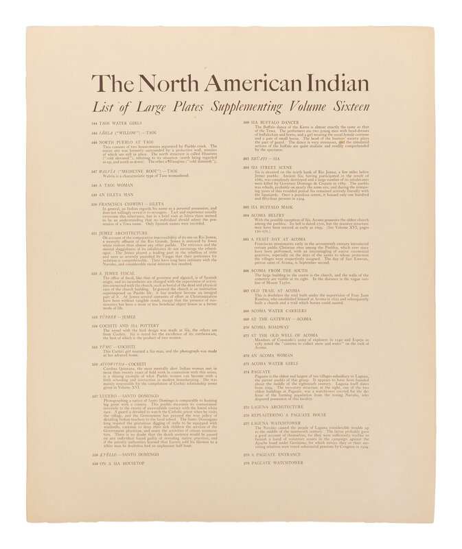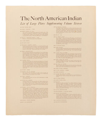 CURTIS, Edward S. (1868-1952). The North American Indian... List of Large Plates Supplementing Volume Sixteen. [Norwood, Massachusetts: The Plimpton Press, 1930].