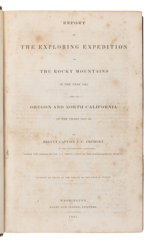 FREMONT, John Charles (1813-1890). Report of the Exploring Expedition to the Rocky Mountains in the Year 1842 and to Oregon and North California in the Years 1843-1844. Washington: Gales & Seaton, 1845.
