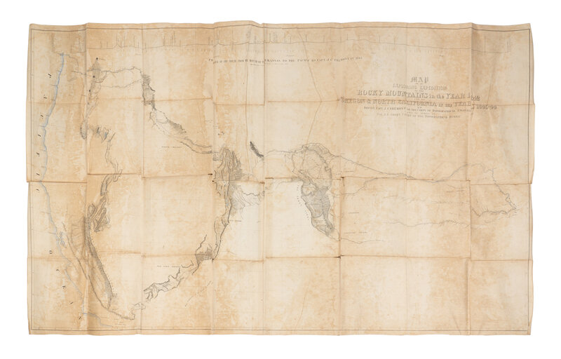 FIRST SENATE ISSUE. Initially hired to assist French explorer Joseph Nicollet in his explorations of lands between the Mississippi and Missouri rivers, John C. Fremont was chosen to succeed Nicollet when he became too ill to continue further explorations. This expedition's aim was to explore and map the territory for future acquisition by the United States. Over the course of two years and two expeditions Fremont made it through Colorado and the Rocky Mountains to the west coast, accumulating invaluable scientific data and drafting maps of the region, with that made by Charles Preuss considered to be so important as to make 1845 “one of the towering years in the story of Western cartography” (Wheat II:194). The report was one of the most studied works prior to the gold rush, and the text and maps had a powerful effect on the routes chosen by emigrants to the west. Field 565; Graff, 1436; Howes, F370; Rosenbach. 32:146; Sabin 25845. Soliday I:861; Streeter 3131; Wagner-Camp 115:1. Wheat 497.