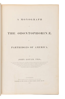 GOULD, John (1804-1881). A Monograph of the Odontophorinae, or Partridges of America. London: Richard & John E.