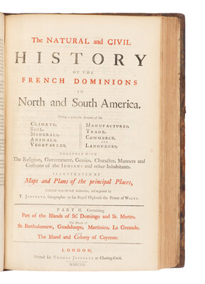 JEFFERYS, Thomas (1719-1771). The Natural and civil history of the French dominions in North and South America. London: Printed for Thomas Jefferys, 1760.