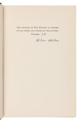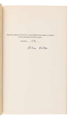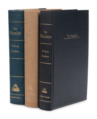 FIRST EDITION, LIMITED ISSUE SET of the Snopes Trilogy, ALL SIGNED BY FAULKNER. The Hamlet is number 68 of 250 copies. The Town is number 54 of 450 copies. The Mansion is number 324 of 500 copies. Petersen A22.1a; 47.1a; 52.2a. A FINE SET.