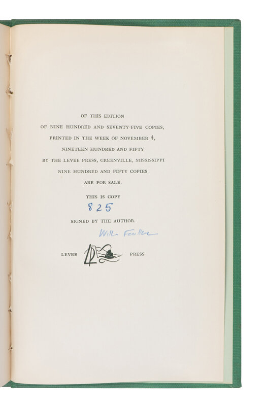 FIRST EDITION, LIMITED ISSUE, number 825 of 975 copies, SIGNED BY FAULKNER. Notes on a Horse Thief is the only Faulkner work to be published in his home state of Mississippi. Petersen A30.1.
