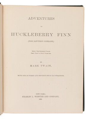 CLEMENS, Samuel L. ("Mark Twain") (1835-1910). The Adventures of Huckleberry Finn. New York: Charles L. Webster and Company, 1885.