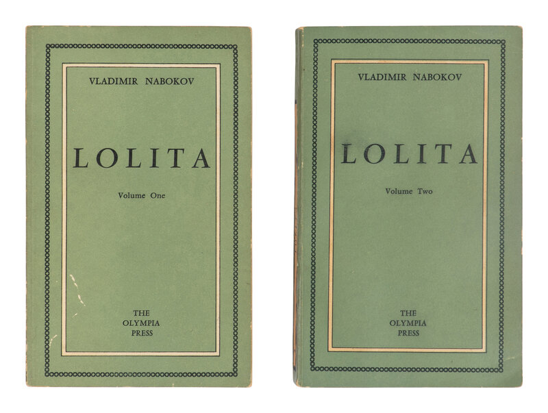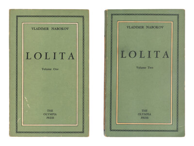 FIRST EDITION, FIRST ISSUE, with printed price "Francs: 900" on back cover. Nabokov's controversial novel was rejected by American publishers, all of whom feared the repercussions of publishing such a "pornographic" work. It was finally accepted by the avant-garde Olympia Press in Paris and published in this two-volume edition. The first edition sold out quickly, but it was not warmly received abroad: alarmed by Graham Greene's assessment of Lolita as "one of the three best books of 1955," the English government pressured the French to ban the novel, and it was not published in America until 1958. Lolita is ranked fourth on the Modern Library's list of 100 Best Novels of the 20th Century. Juliar A28.1.1, issue a.