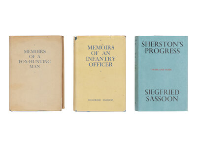 SASSOON, Siegfried (1886-1967). [Sherston trilogy]. Memoirs of a Fox-Hunting Man. 1928. -- Memoirs of an Infantry Officer. 1930. -- Sherston's Progress. 1936. London: Faber & Gwyer; Faber & Faber.