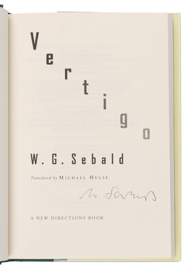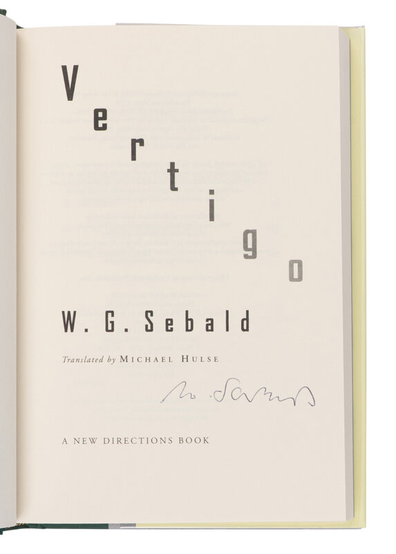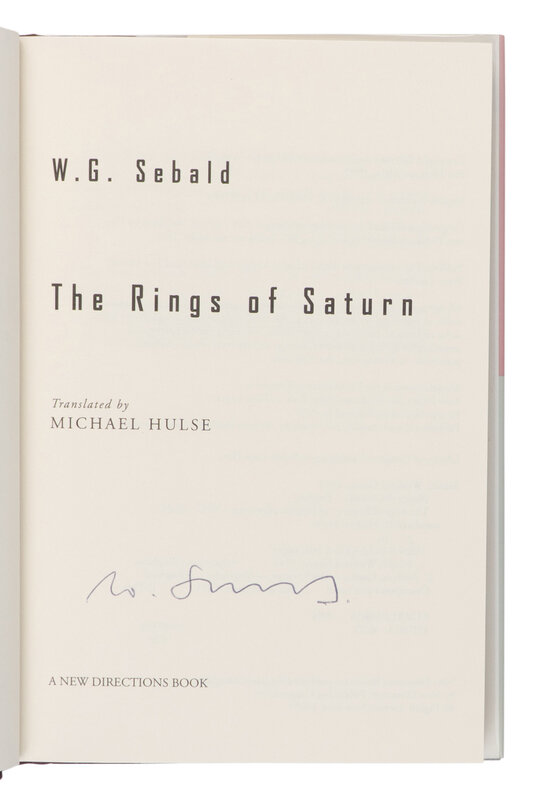 FIRST AMERICAN EDITIONS. TWO SIGNED BY SEBALD on the title-pages (Rings of Saturn and Vertigo). W.G. Sebald’s trilogy of prose works stands among the most influential literary achievements of the late 20th century. Blending memoir, travel narrative, fiction, and archival photography, Sebald’s haunting meditations trace themes of exile, memory, and historical trauma. Vertigo, his first major work published in German in 1990, interweaves journeys with literary figures; The Emigrants presents four deeply affecting portraits of Jewish lives uprooted by the Holocaust; and The Rings of Saturn, set along the Suffolk coast, expands into a sweeping reflection on history and decay.