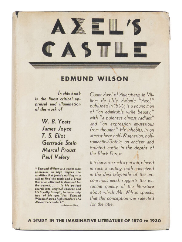 WILSON, Edmund (1895-1972). Axel's Castle. A Study in the Imaginative Literature of 1870-1930. New York and London: Charles Scribner's Sons, 1931.