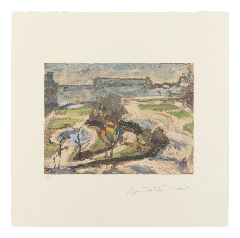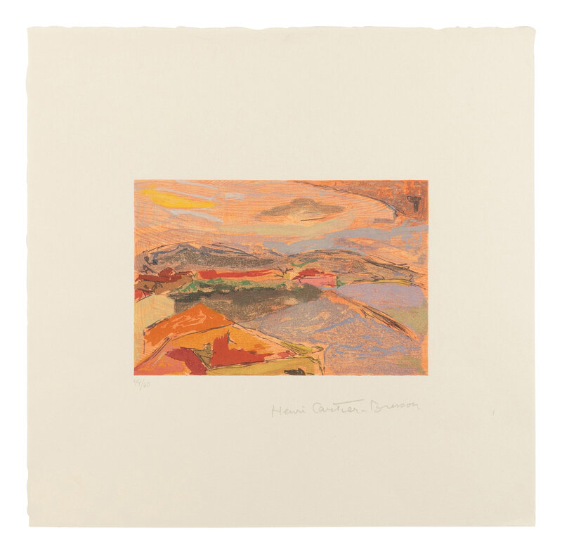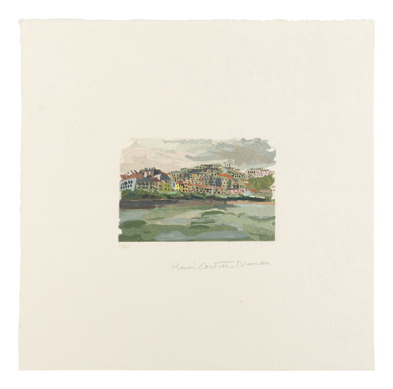 Portfolio of 3 watercolor woodcut plates by Cartier-Bresson, loose as issued, with printed title-page and limitation leaf; in original red cloth portfolio with black calf lettering-piece gilt on upper cover.
